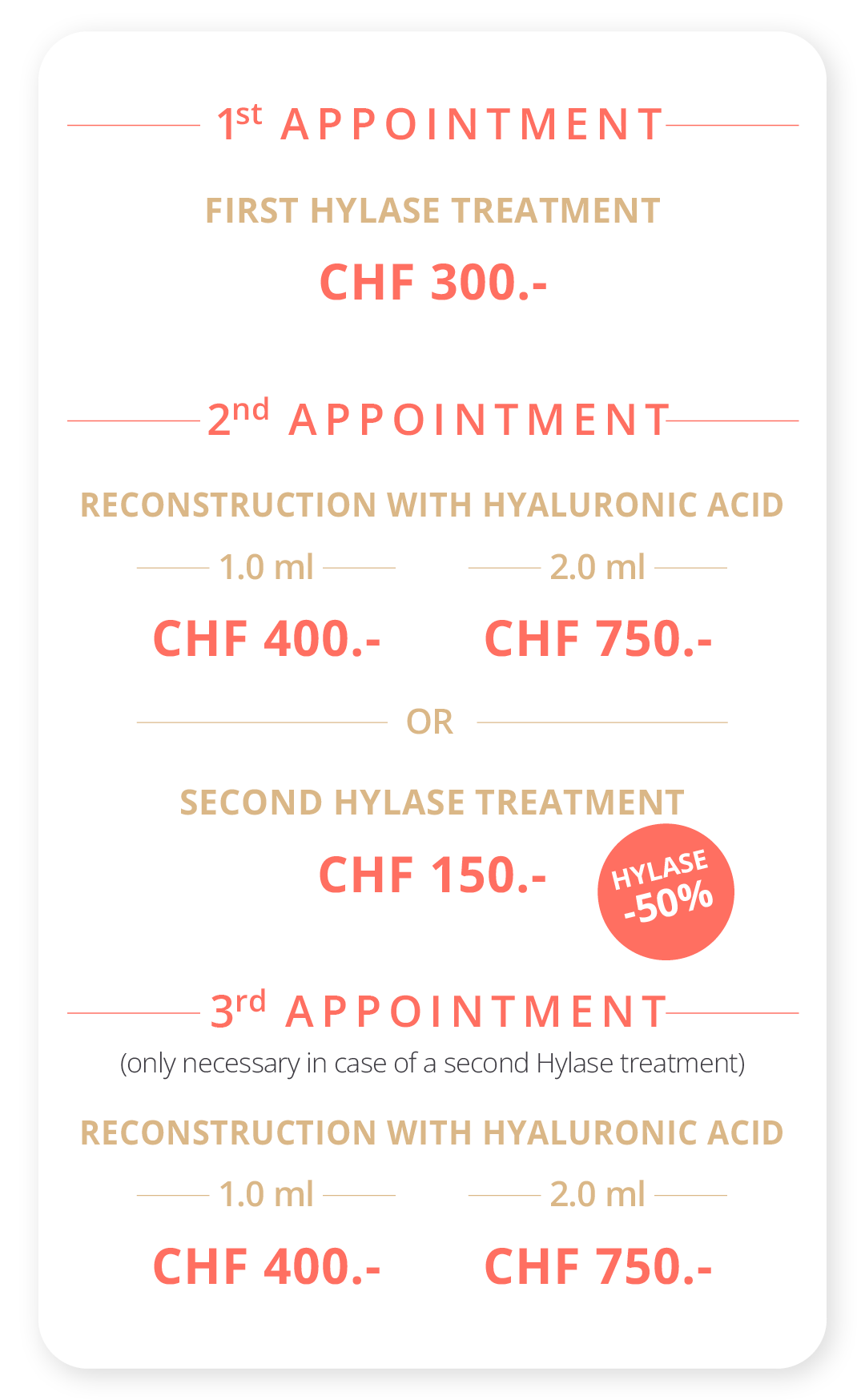 We offer Hylase treatments at all our locations, including Zurich, Basel, Bern, Geneva, Lausanne, Winterthur, St.Gallen and Lucerne. You can find more information about our locations and opening hours at the bottom of this page or here at Beauty2Go Contact. Would you like to make an appointment for a free consultation right now? With our online tool, this is possible in just a few seconds.